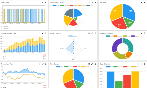 4)提供豐富的可視化控件庫,通過拖拽、簡便配置即可完成美觀的UI設計。支持GIS地圖、曲線圖、柱狀、餅圖、圖表、按鈕、儀表圖等控件。