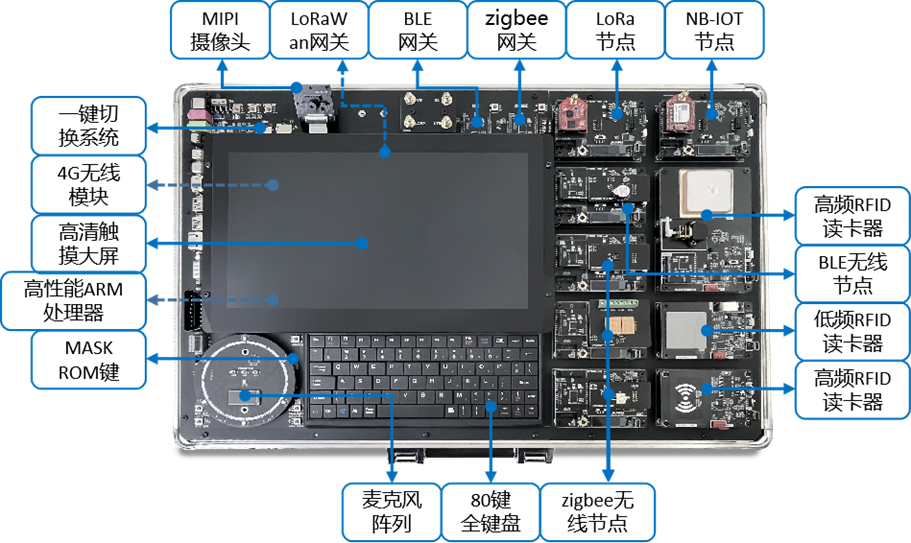 本項目實驗平臺搭載瑞芯微RK3399處理器,不少于9個無線傳感器節(jié)點,配備11.6寸高清觸摸屏、高清相機模塊、7麥麥克風陣列和ODB接口。 硬件系統(tǒng)采用DC12V電源適配器安全統(tǒng)一供電,結構為上下兩層一體化設計,上層緊固式安裝實驗所需硬件(非磁吸式安裝),實驗所需硬件均平鋪安裝在一整塊底板上,下層收納放置配套線材、配件等設備。 實驗平臺支持ZigBee、BLE、lorawan、nbiot、RFID等無線網(wǎng)絡通信,支持無線傳感器網(wǎng)絡、物聯(lián)網(wǎng)人工智能、嵌入式系統(tǒng)開發(fā)、RFID射頻識別技術等課程實驗。同時配備可私有云和公有云部署的“物聯(lián)網(wǎng)云平臺”,配合多種傳感器模塊,可完成基于物聯(lián)網(wǎng)云平臺的嵌入式無線傳感器綜合實驗。本平臺提供嵌入式深度學習框架Tengine,可完成人工智能實驗,包含基于深度學習的目標檢測實驗、基于深度學習的人臉識別實驗,可完成聲紋識別門禁實驗、AI語音智能家居實驗、知識圖譜和聊天機器人實驗等人工智能實驗。 一、硬件技術參數(shù): ★1、處理器: CPU: RK3399:六核 Dual Cortex-A72 + Quad Cortex-A53, 64-bit CPU at 1.8GHz GPU: Mali-T864 GPU,支持 OpenGL ES 1.1/2.0/3.0/3.1, OpenVG 1.1, OpenCL, DX11 存儲器:雙通道LPDDR3(64-bit)不低于4GB,16GB 高速emmc 擴展存儲,MicroSD不低于64G 高清相機模組:CMOS傳感器OV13850,MIPI信號輸出,1300萬像素,最高支持4224x3136像素。 4、AI高清攝像機:有效像素500萬像素,對焦方式自動對焦,USB2.0接口,提供基于eAIOT教學平臺的人臉識別系統(tǒng)案例。 ★5、顯示屏:平臺板載不低于11.6寸高清觸顯一體屏,eDP接口,分辨率不低于1920*1080 ★6、網(wǎng)管模組:1)LoRaWAN網(wǎng)關模塊接口:板載mini-pcie接口,可接入SX1301八通道并行LoRaWAN網(wǎng)關模塊。本項目須至少配備一個LoRaWAN網(wǎng)關模塊和兩個lorawan節(jié)點模塊以實現(xiàn)對實驗室所有l(wèi)ora節(jié)點的接入管理。 2)Zigbee網(wǎng)關模塊:板載,采用直列雙排20芯插針牢靠固定,非usb接口。 3)BLE網(wǎng)關模塊:板載,采用直列雙排20芯插針牢靠固定,非usb接口。 7、無線傳感器節(jié)點及RFID功能組成 傳感器節(jié)點由無線核心模塊、傳感器模塊和底板三部分組成,要求3個功能模塊均可拆裝,方便更換和升級; 節(jié)點底板:不少于6個。板載OLED液晶顯示屏,可顯示傳感器類型等信息;板載USB轉串口接口,方便測試調(diào)試使用。 無線核心模塊,不少于7個,包含zigbee、BLE、lora、nbiot。其中l(wèi)ora模塊采用Semtech的lora芯片sx1278支持LoRaWAN Class A, ClassB and Class C 協(xié)議;NBiot模塊采用的是lierda NB86-G,主控芯片是STM32F103。要求采用直列雙排20芯插針的模塊化設計。 傳感器模塊:溫度/光敏/蜂鳴器一體傳感器模塊、高精度溫濕度傳感器模塊、兩路繼電器模塊、8*8 LED點陣模塊、可燃氣體傳感器模塊、可調(diào)LED燈光模塊。 高頻RFID讀卡器:核心芯片采用RC632,支持對Mifare_Std S50、I.CODE2等標準非接觸式IC卡進行讀寫操作。 ★低頻RFID讀卡器:支持對 Em4100等標準ID卡進行讀卡操作。板載電磁鎖模塊,配合麥克風陣列模塊可實現(xiàn)聲紋鎖等實驗。 ★超高頻RFID讀卡器:核心芯片采用PR9200,支持對ISO18000-6C & EPC global Gen2 協(xié)議卡片進行讀寫操作。板載有源擴展模塊可以和嵌入式主板有源擴展模塊配對完成有源通信功能,同時集成電機模塊,可實現(xiàn)ETC道閘等實驗。 8、4G模組:板載EC20模組,支持LTE TDD/LTE FDD/TD-SCDMA/WCDMA /TD-SCDMA/CDMA2000/CDMA/GSM等頻段 ★9、7路麥克風陣列: 1)7路麥克風陣列,提供聲源定位、語音增強、語音降噪、回聲消除、聲音拾取等功能。(需提供完整硬件原理圖及PCB文件截圖證明為自主研發(fā)產(chǎn)品) 2)RISC-V 雙核64位處理器,主頻最高800MHz。集成卷積神經(jīng)網(wǎng)絡加速器KPU,峰值算力1TOPS。 3)一體化單板設計,集成TFT彩色液晶屏,能夠直觀顯示彩色音頻頻譜圖。 4)集成 STM32音頻驅動芯片,提供USB聲卡驅動,開放源代碼。(提供源碼工程截圖,源碼備查) 5)采用雙列直插封裝和USB接口輸出,需能夠接入到系統(tǒng)主板中使用。 6)5米監(jiān)測范圍,基于linux系統(tǒng)。 ★10、OBD接口:板載,標準16針OBD-II插座,與配套軟件結合可完成基于CAN總線通信相關實驗。 11、天線接口:板載wifi、BLE、lora、LTE共4個天線接口。 12、其他硬件及接口: 1)UART:1路RS232,1路RS485 2)以太網(wǎng):100/1000M 3)音頻:音頻輸出接口、MIC音頻輸入接口、板載4歐3W揚聲器 4)無線網(wǎng):WiFi (2.4G and 5G, 802.11 ac), Bluetooth 4.1 5)USB 3.0 HOST接口:板載2個 6)Debug接口:板載1個,Download接口:板載1個 ★7)鍵盤:板載7寸80鍵標準鍵盤 8)紅外接收:板載紅外接收模塊1個 9)傳感器擴展接口:板載,與無線傳感器節(jié)點的傳感器模塊接口兼容,可完成linux系統(tǒng)下的傳感器驅動開發(fā)實驗。 10)按鍵:板載重啟、恢復、電源、MASKR0M 4個功能按鍵,其中MASKROM按鍵可控制系統(tǒng)從SD卡啟動。板載4個用戶自定義按鍵 LED:板載4顆藍色LED燈珠 11)震動馬達傳感器:板載1個 12)其他接口:MIPI、GPIO、SPI、I2C、TF Card (sd/mmc 3.0)、SIM卡座、USB 2.0 HOST、USB Type-C (with DP out)、eDP 1.3、HDMI 2.0 for 4K 60Hz 13、實驗箱箱體:上下兩層一體式設計,上層板載固定安裝實驗所需硬件,下層收納放置配套電源適配器、線材、配件等設備。 二、軟件規(guī)格參數(shù)要求 ★1、操作系統(tǒng):Linux+QT、Ubuntu18.04、Android8.1,支持Linux+QT、Ubuntu雙操作系統(tǒng)SD