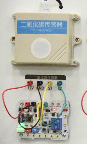 圖2-4 二氧化碳傳感器實(shí)物圖 圖2-5 二氧化碳傳感器實(shí)物接線圖