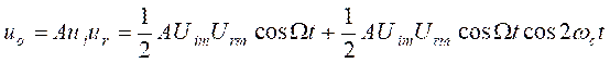顯然,上式右邊第一項(xiàng)是所需要的調(diào)制信號,而第二項(xiàng)為高頻分量,可被低通濾波器濾除。