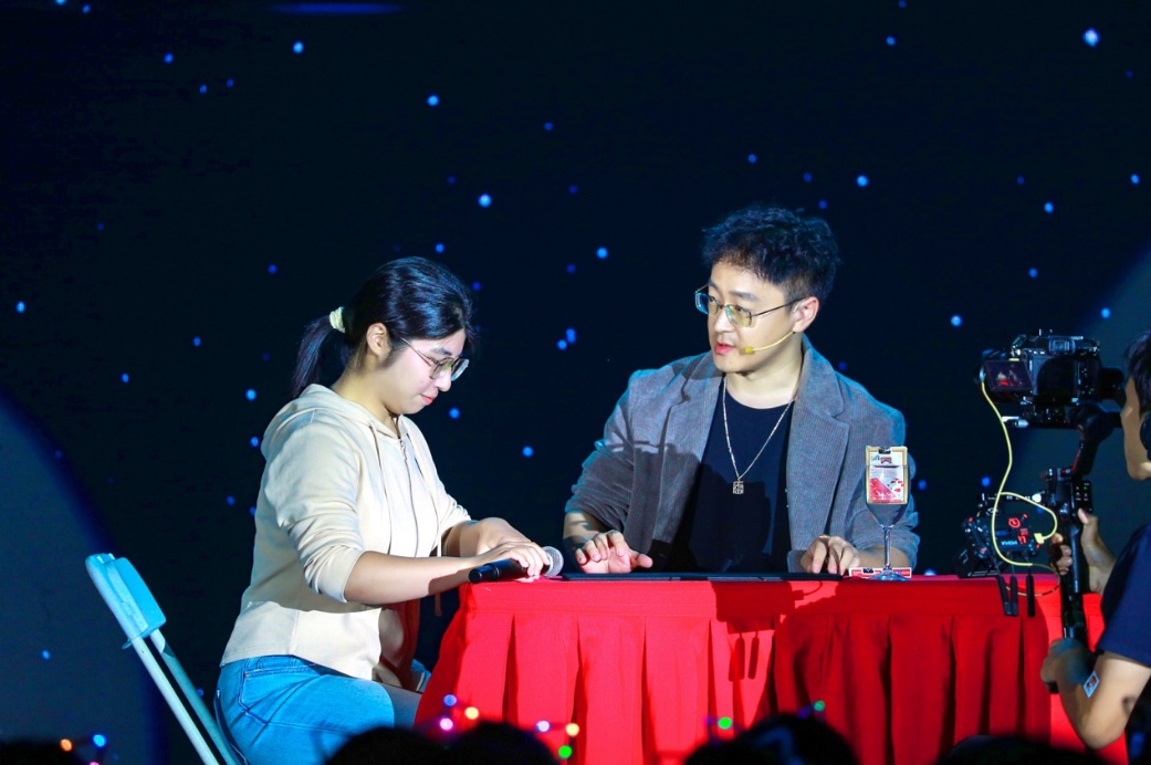 在中秋佳節(jié)即將到來之際,來自各個(gè)院系的教師代表帶來了歌曲《望月》,為同學(xué)們送出最真摯的祝福。魔術(shù)《月夜魔法》將遠(yuǎn)方的親友與現(xiàn)場(chǎng)聯(lián)通,帶來團(tuán)聚的溫暖。創(chuàng)意編排《驍》將歌曲與武術(shù)結(jié)合,打造出氣勢(shì)磅礴的武俠世界,旋律激蕩之間,凝聚著華夏兒女的昂揚(yáng)斗志與無盡豪情。