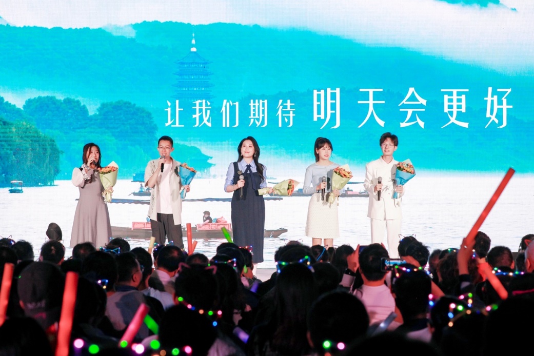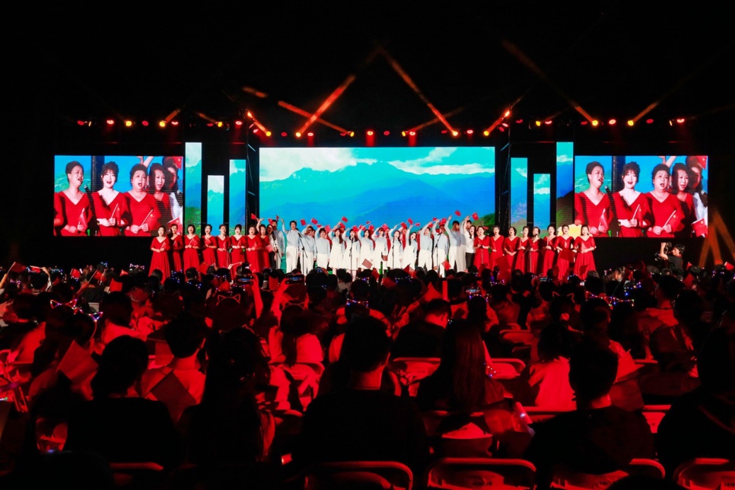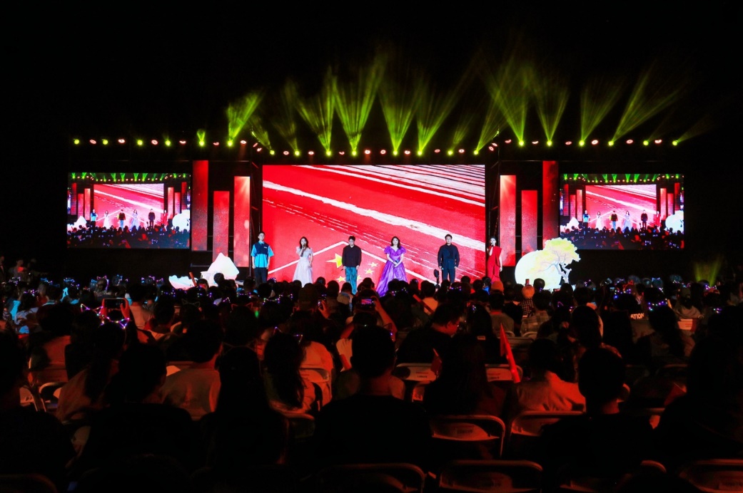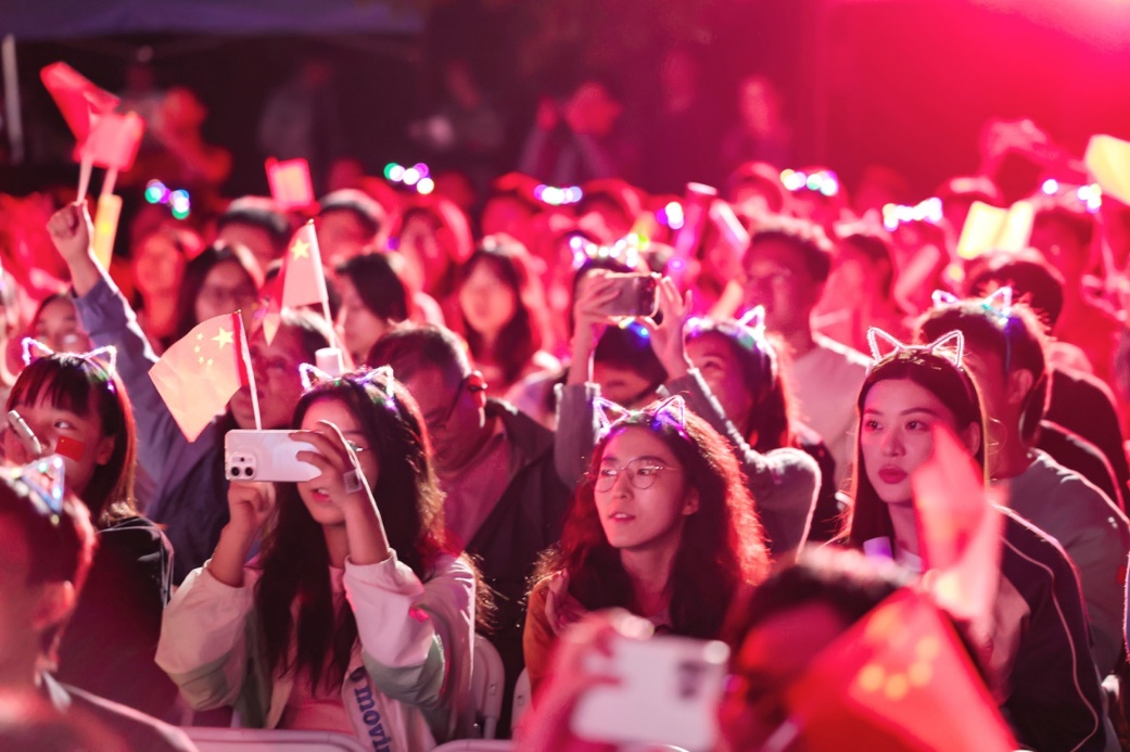 十佳歌手聯(lián)袂獻(xiàn)唱的《我愛你中國(guó)》向祖國(guó)送出最深情的告白,用歌聲獻(xiàn)禮祖國(guó)華誕。大屏幕上一幅幅中國(guó)壯麗風(fēng)光、建設(shè)成就和人民幸福生活的影像徐徐展開,與歌聲交織成一曲動(dòng)人的視聽交響。 “我愛你中國(guó),心愛的母親”唱響時(shí),全場(chǎng)觀眾深受感染,情不自禁地起身揮動(dòng)手中的國(guó)旗,一同加入合唱。霎時(shí)間,草坪化為一片涌動(dòng)的紅色海洋,激昂的歌聲與澎湃的激情交織,將晚會(huì)現(xiàn)場(chǎng)化作一堂生動(dòng)而深刻的愛國(guó)主義課堂。