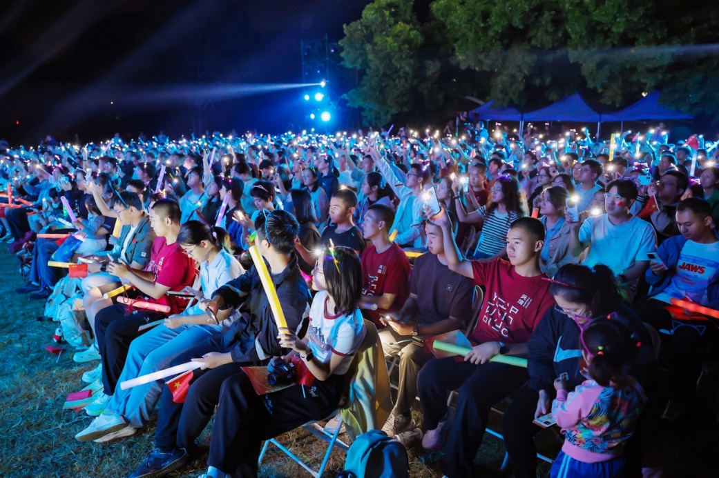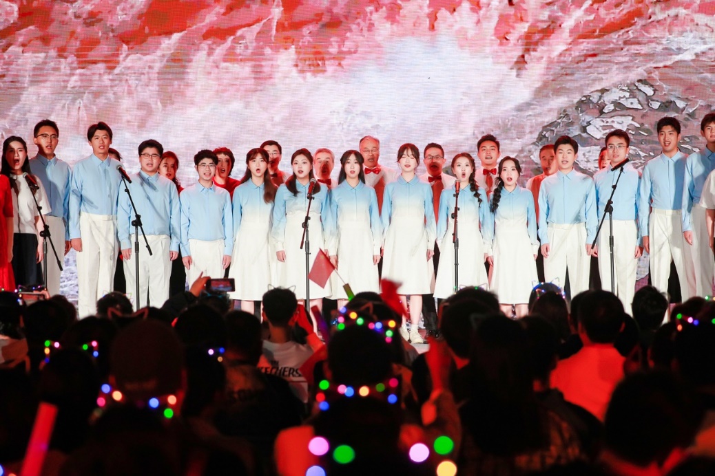 青春歌曲和經(jīng)典曲目的薈萃交融:《青春大概》《夜空中最亮的星》或青澀懵懂,或溫柔堅(jiān)定,展示了追夢(mèng)路上永不服輸?shù)尿湴僚c勵(lì)志,觀眾們一起揮舞手中的熒光棒、跟隨著歌手哼唱,倍感幸福充實(shí)!督裉臁贰洞和パ贰缎腋?燔嚒返冉(jīng)典歌曲更承載著北大學(xué)子對(duì)音樂與美的熱忱追求,為師生帶來一場(chǎng)視聽盛宴。