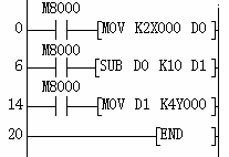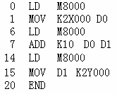 (4)例程:A、輸入程序,并運行,觀察結果。B、將ADD指令中的常數(shù)K10改為其他常數(shù),觀察結果。