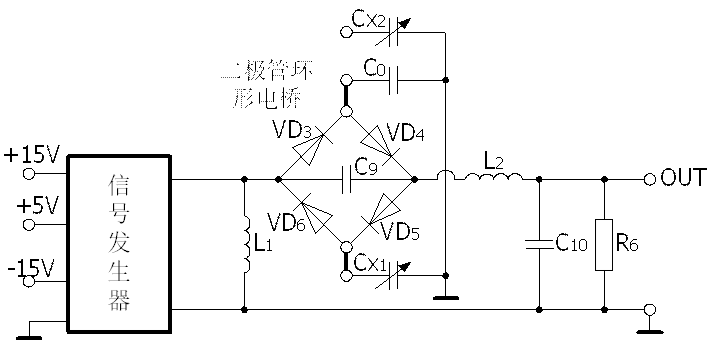 2、圖7-1中的電容轉(zhuǎn)換電路圖如圖7-2所示。圖中的信號發(fā)生器用于產(chǎn)生方波信號。電容轉(zhuǎn)換由二極管環(huán)形電橋完成,二極管環(huán)電橋工作原理如圖7-3所示。