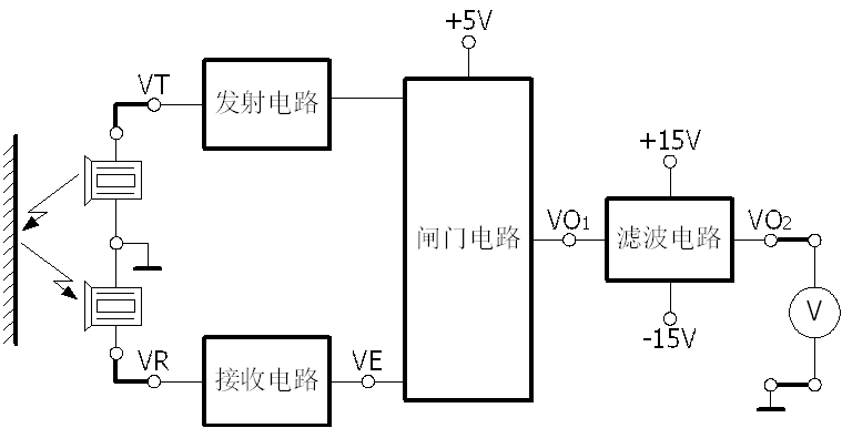 圖41-1 超聲波傳感器實(shí)驗(yàn)原理圖