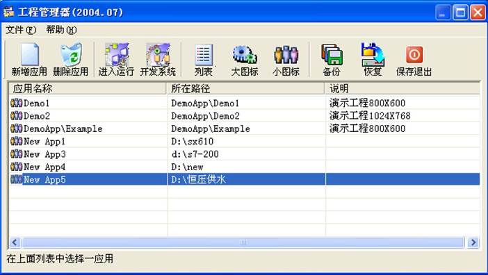 在“工程管理器”中選擇“新增應(yīng)用”,就會彈出應(yīng)用定義對話框