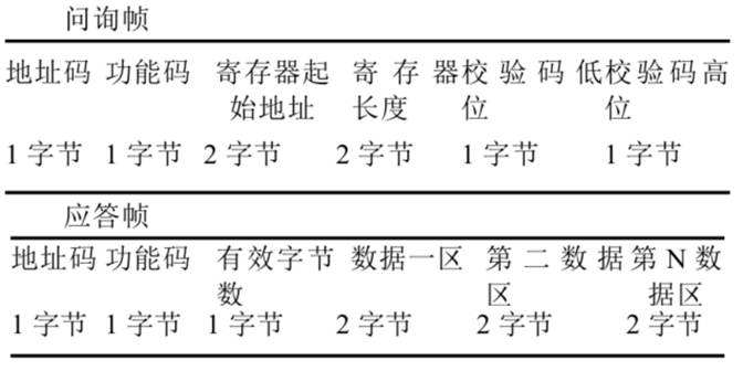 問詢幀:| 地址碼 | 功能碼 | 起始地址 | 數(shù)據(jù)長度 | 校驗(yàn)碼低位 | 校驗(yàn)碼高位 |