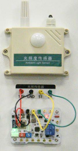 圖2-9  光照度傳感器實(shí)物圖                    圖2-10 光照度傳感器實(shí)物接線(xiàn)圖