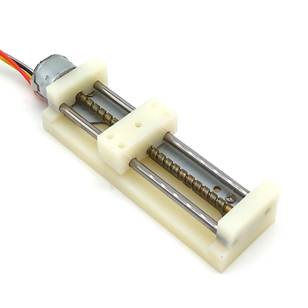 本教材所用電機為模擬實際窗簾使用,選用的是直流微型二相四線步進電機,并為其設計了一組滑臺和絲桿來模擬窗簾的實際運動過程。
