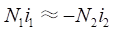 式(3-13)表明變壓器一、二次繞組的電流之比與它們的匝數(shù)成反比。其中,一次繞組的電流由變壓器所接負載的電流決定。