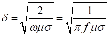 電磁波進(jìn)入導(dǎo)體的距離為幾個穿透深度時,振幅即接近于零,故良導(dǎo)體中的電磁場以及傳導(dǎo)電流于實際上只存在于導(dǎo)體表面處極薄的一層之中。這種電磁場及電流集中于導(dǎo)體表面附近的現(xiàn)象,稱為趨膚效應(yīng)。由于d很小,故在頻率很高時,對一切具有實際意義的厚度的導(dǎo)體,電磁波是不能透過的。良導(dǎo)體的得透射系數(shù)為