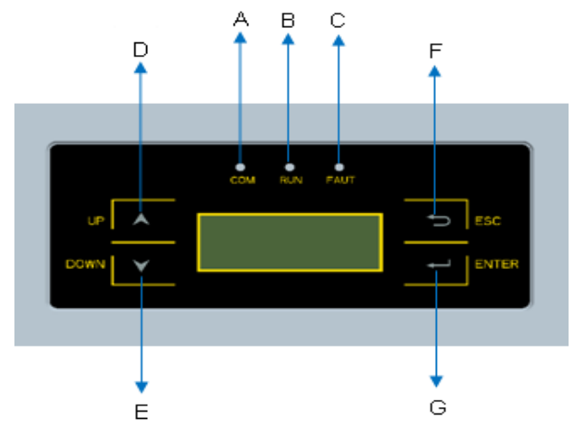 系統(tǒng)采用的逆變器擁有精美的顯示屏,顯示機器所有相關(guān)的運行信息和設置,三個LED燈分別指示機器的運行狀況,通信狀態(tài)和是否有錯誤信息,用戶可以一目了然的了解機器的實時運行狀況。