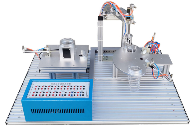 六邊形實(shí)訓(xùn)控制屏:實(shí)訓(xùn)控制屏采用六邊形結(jié)構(gòu)。框架采用30 R的半圓形鋁型材經(jīng)過(guò)專(zhuān)用連接件組裝,頂面與底面采用§1.2mm厚的優(yōu)質(zhì)鋼板連接。三邊弧形作業(yè)面均配置有實(shí)訓(xùn)電源、氣源及PLC主機(jī)控制系統(tǒng),且相互獨(dú)立,互不干涉;控制面板按鍵為薄膜輕觸式設(shè)計(jì),具有漏電保護(hù)、短路保護(hù)功能。電源控制屏頂面采用10mm厚的鋁框包邊,內(nèi)置有直徑為850mm的多角度公共操作平臺(tái),公共操作平臺(tái)能360°旋轉(zhuǎn),能做120°定位,平臺(tái)頂板采用10mm厚的鋁板加工成型,能載重約60Kg的典型工作任務(wù)。