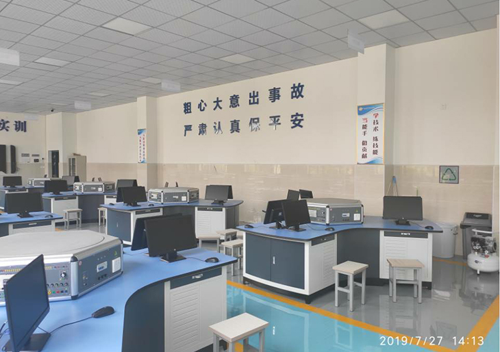 技能工作島由三邊弧形工作臺(tái)、六邊形實(shí)訓(xùn)控制屏及典型工作任務(wù)組成,能同時(shí)容納6名學(xué)生在設(shè)備上進(jìn)行操作。