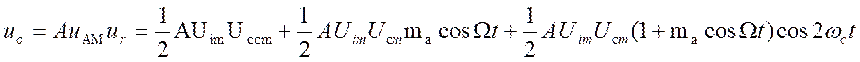 顯然,上式右邊第一項(xiàng)是所需要的調(diào)制信號,而第二項(xiàng)為高頻分量,可被低通濾波器濾除。