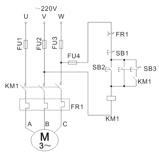 2、三相異步電動機自鎖控制線路: