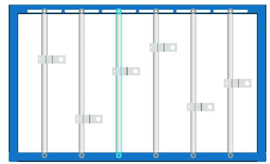 實驗臺機架如圖2所示:機架中有5根鉛垂的活塞桿,它們可沿X軸左右移動,固定靠六角頭螺釘和蝶型螺母固定。需移動時請先將蝶型螺母松開,雙手推動活塞桿.并盡可能使它保持垂直狀態(tài);钊麠U上的滑塊可沿Z軸上下移動,用內(nèi)六角螺釘將滑塊緊定在活塞桿上。(注意:在移動立柱或滑塊時需用直尺或卷尺量出它們的相對位置再把螺釘擰緊。)