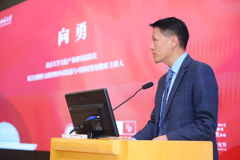 2025年10月18日下午,北京大學(xué)非遺創(chuàng)新可持續(xù)發(fā)展論壇在北京大學(xué)第二體育館B101報(bào)告廳舉行。文旅部非遺司副司長李曉松,山西省文旅廳副廳長張志仁,貴州省婦聯(lián)副主席蔣耘,以及北京大學(xué)社會科學(xué)部部長初曉波,文化產(chǎn)業(yè)研究院院長、聯(lián)合國教科文組織鄉(xiāng)村創(chuàng)意與可持續(xù)發(fā)展教席主持人向勇,黨委宣傳部融媒體中心副主任羅玲出席論壇。